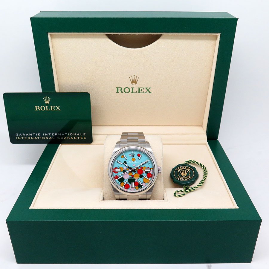Rolex 124300 Oyster Perpetual 41 with Turquoise Celebration Motif Dial