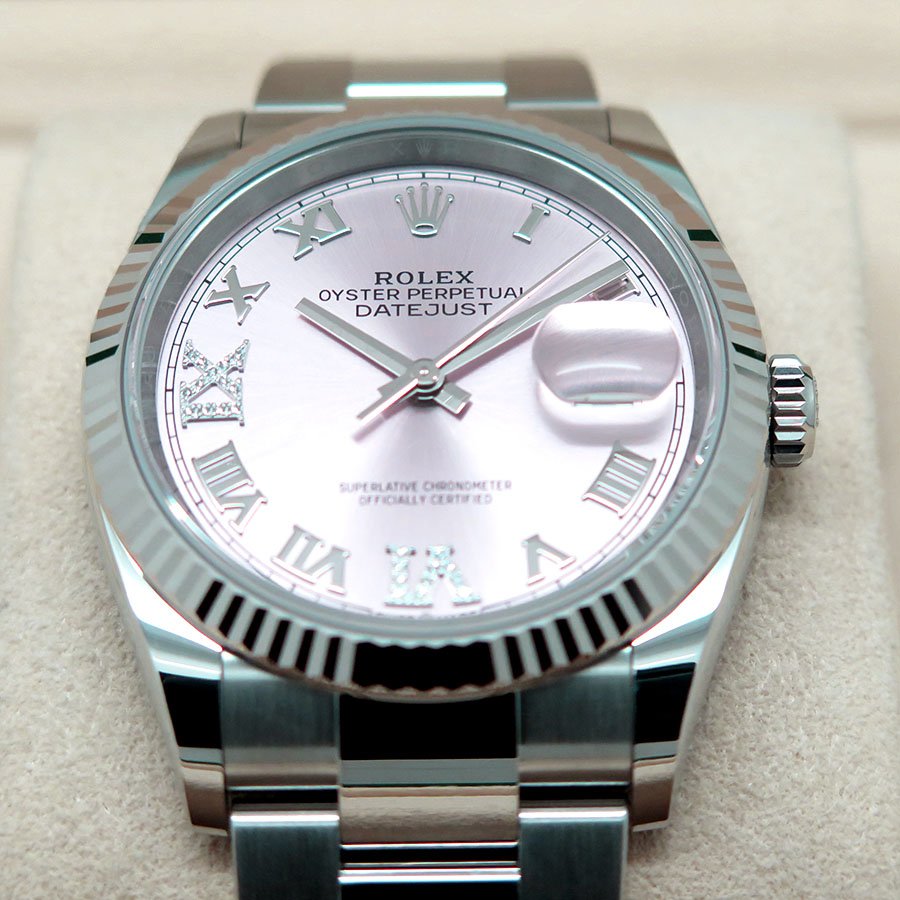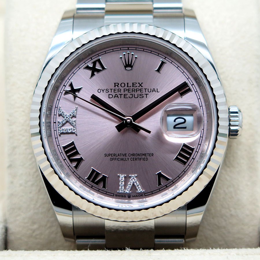 Rolex 126234 Datejust with Pink Roman Diamond “VI” and “IX” Dial