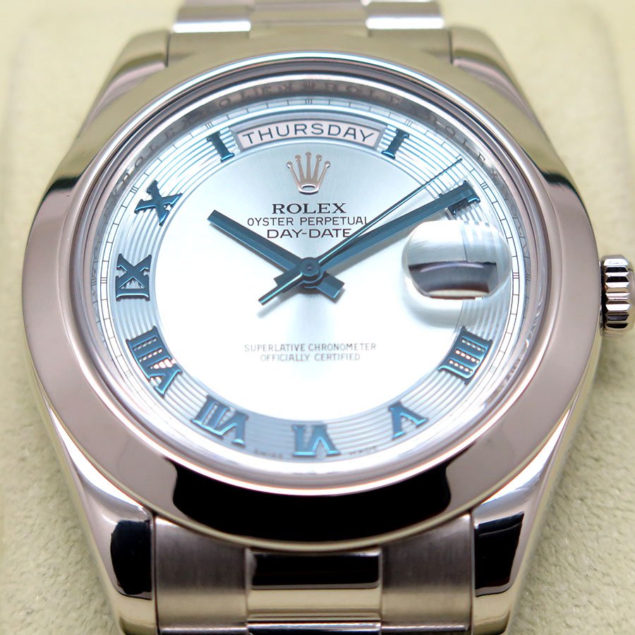 Rolex 218206 Day Date II Platinum with Ice Blue Concentric Roman Dial