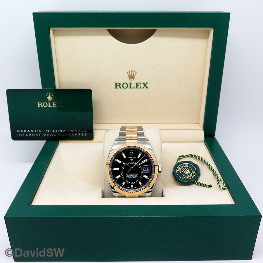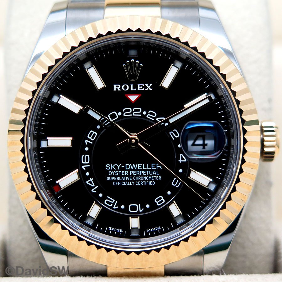 Rolex 326933 Skydweller 18K/SS with Black Dial on Oyster