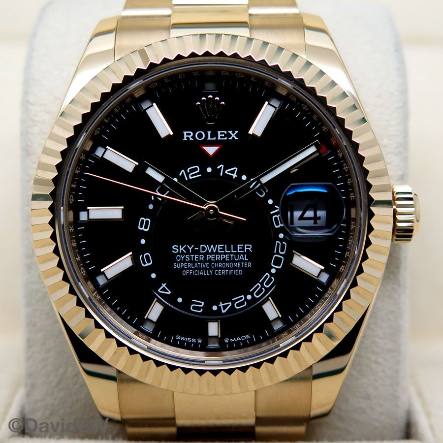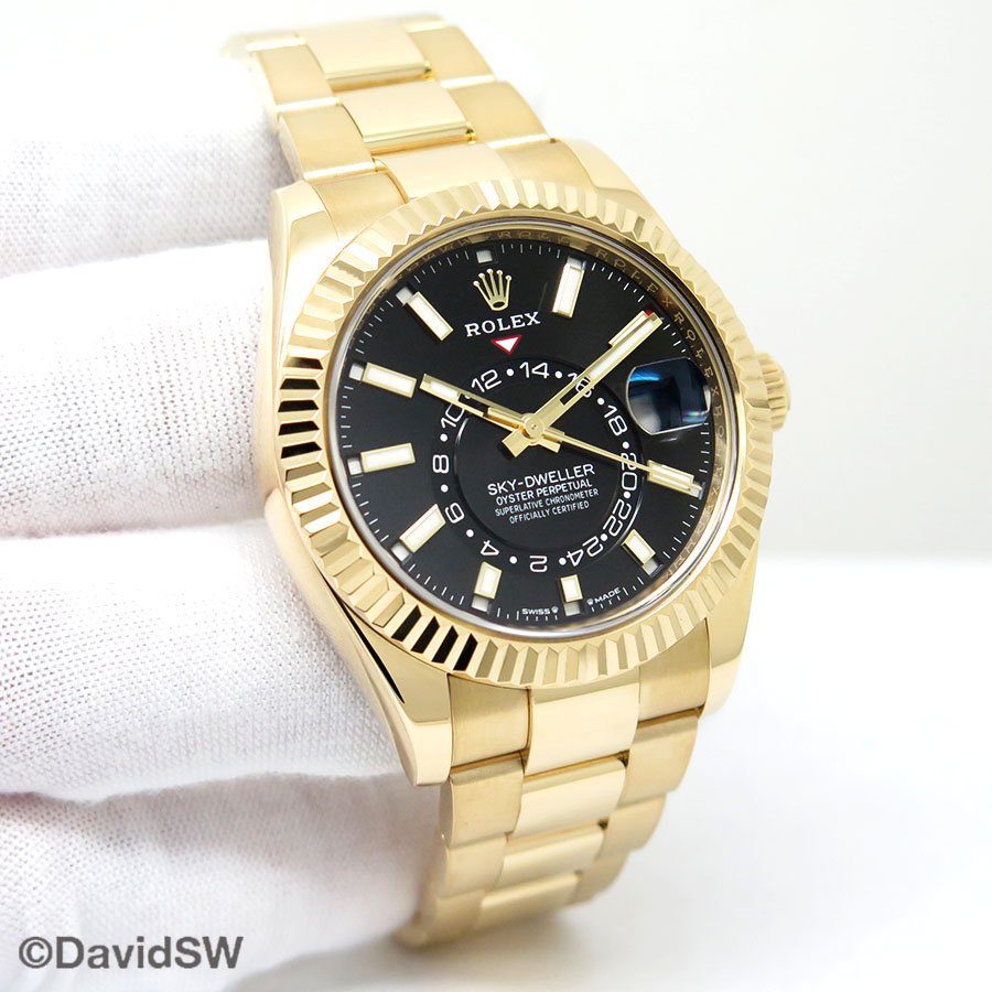 Rolex 336938 Skydweller 18K Yellow Gold with Black Dial on Oyster