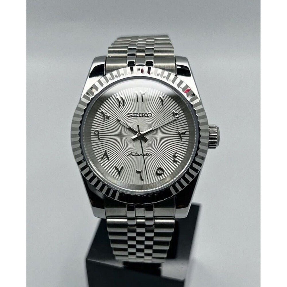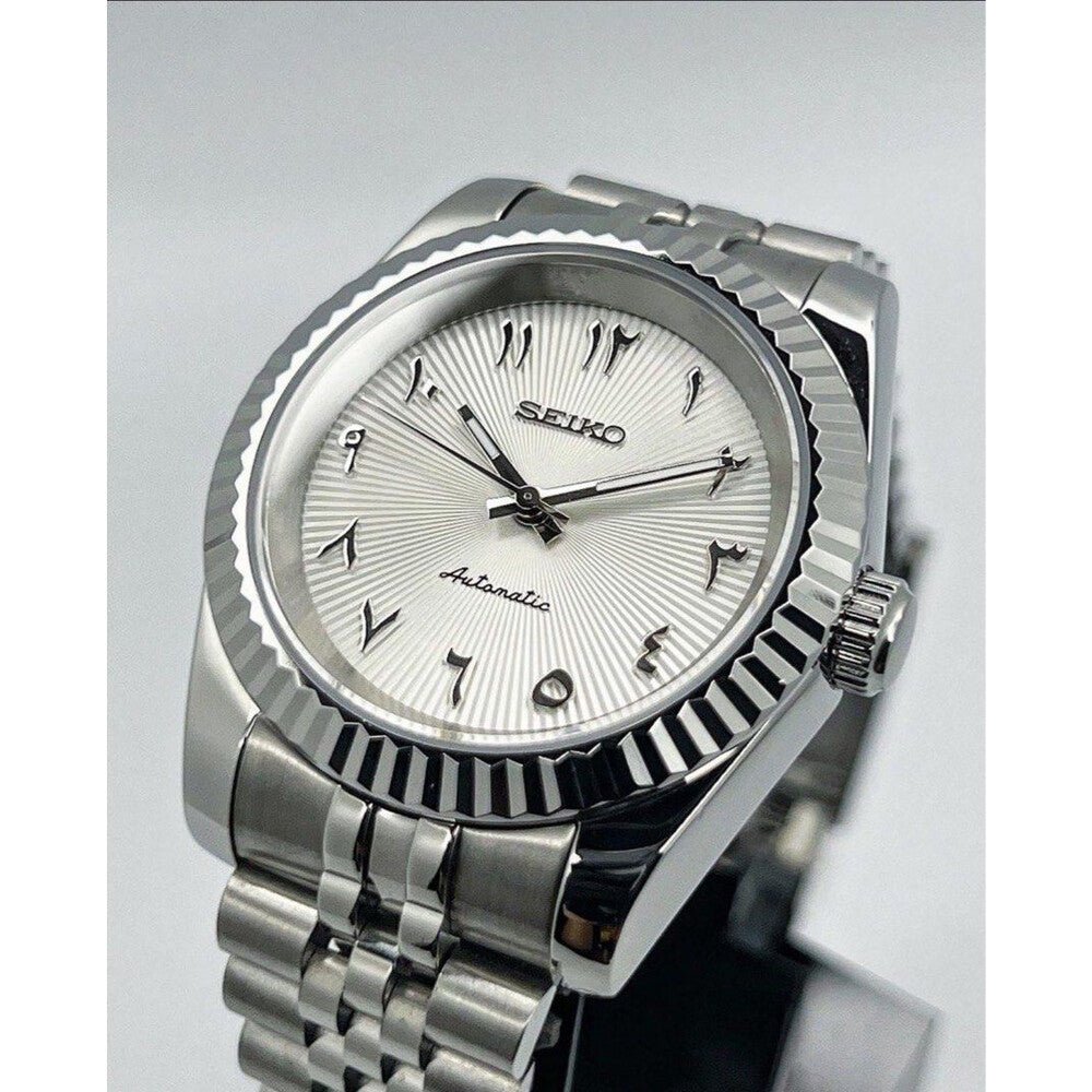 This version is built for simplicity and visual impact. Arabic numerals are engraved into a textured dial with no date window. just a clean face. strong contrast. and smooth automatic movement inside.
