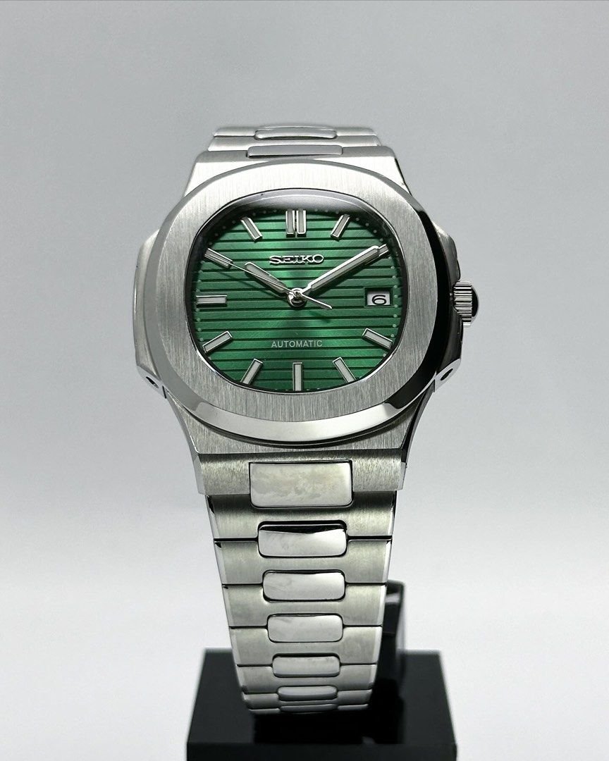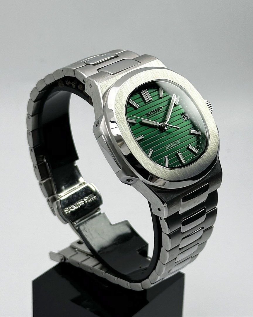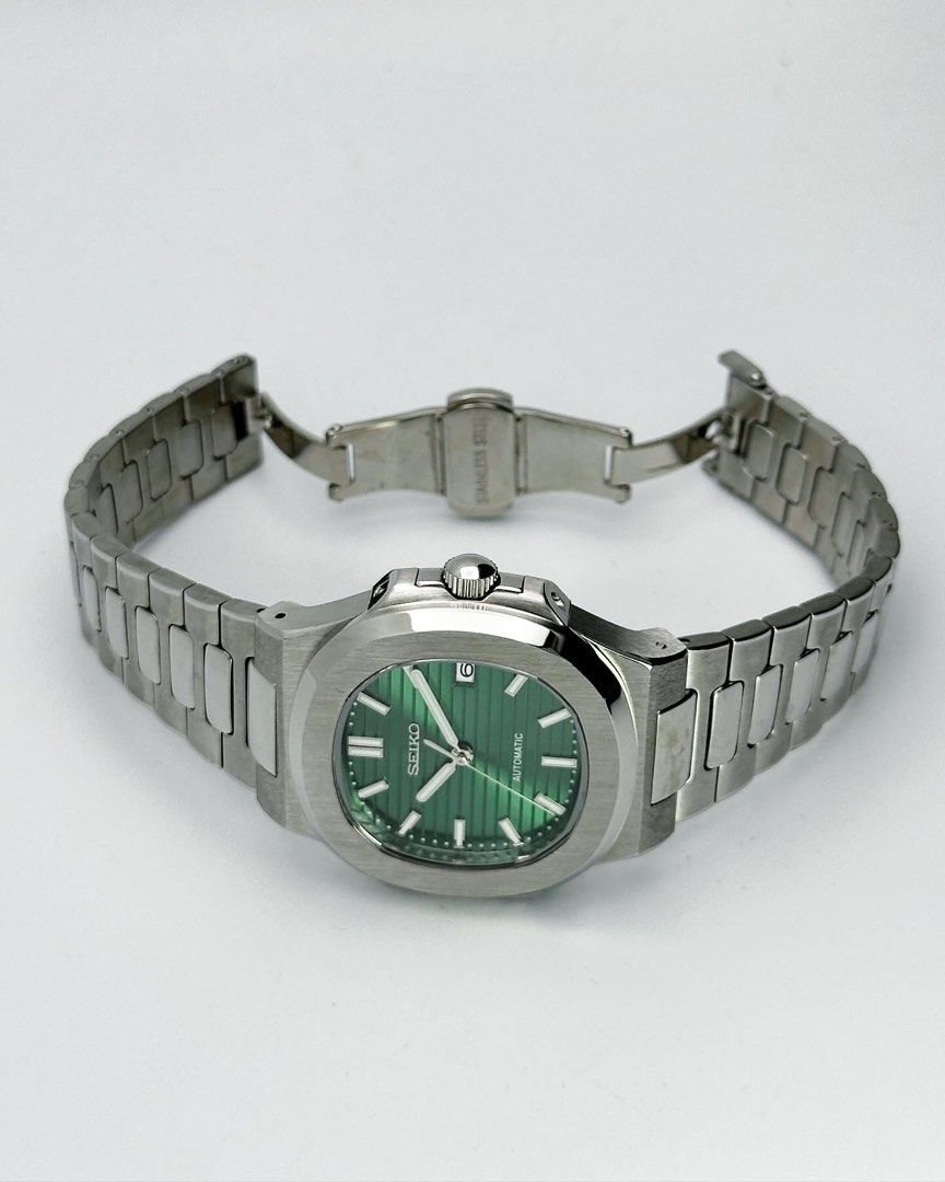 This version features a clean dial with a date window at 3 o’clock. The brushed case and bracelet give it a consistent. modern profile across all color variants.