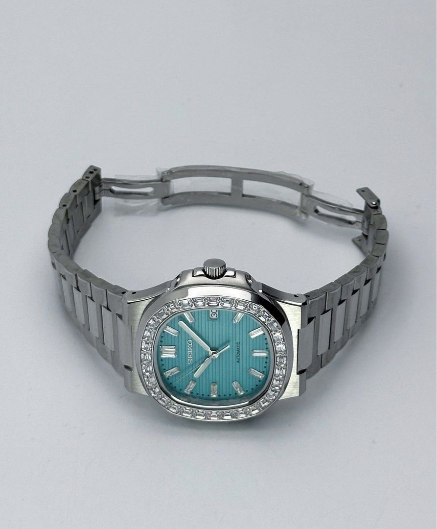 This version features a clean dial with a date window at 3 o’clock. The brushed case and bracelet give it a consistent. modern profile across all color variants.