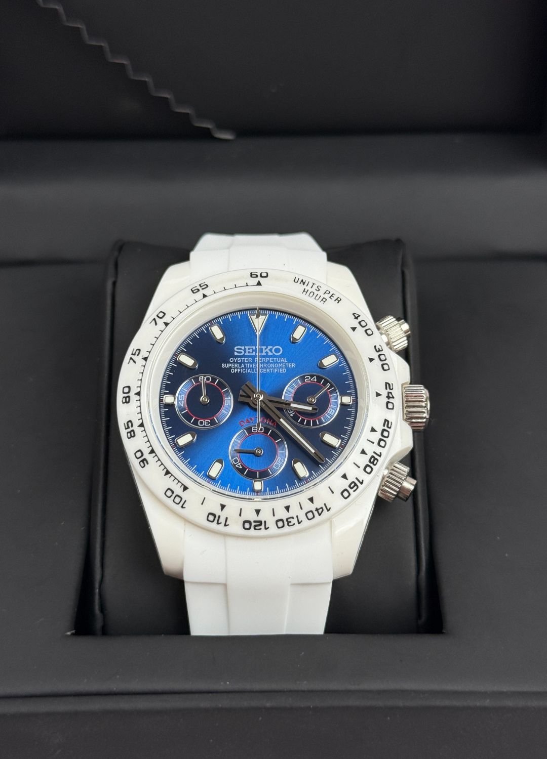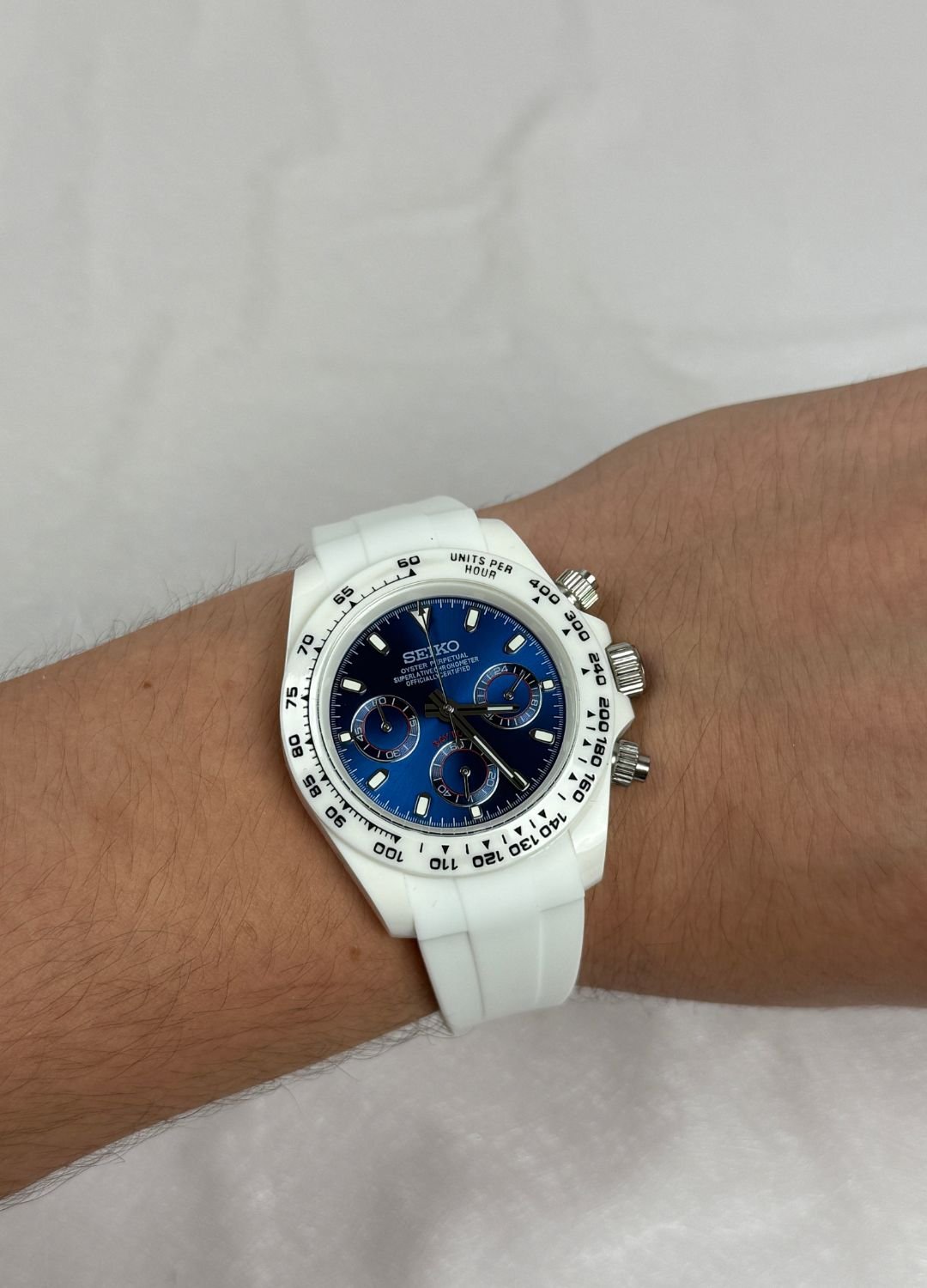 Chronograph with a clean dial layout and three functional subdials. The markers are sharp. the hands are high-contrast. and the case finish brings together brushed and polished surfaces. Ideal if you’re after a daily watch that doesn’t scream for attention but still delivers presence.
