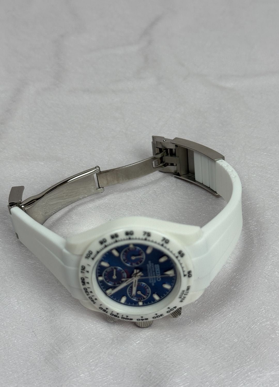 Movement: VK63 Hybrid (mechanical quartz chronograph)