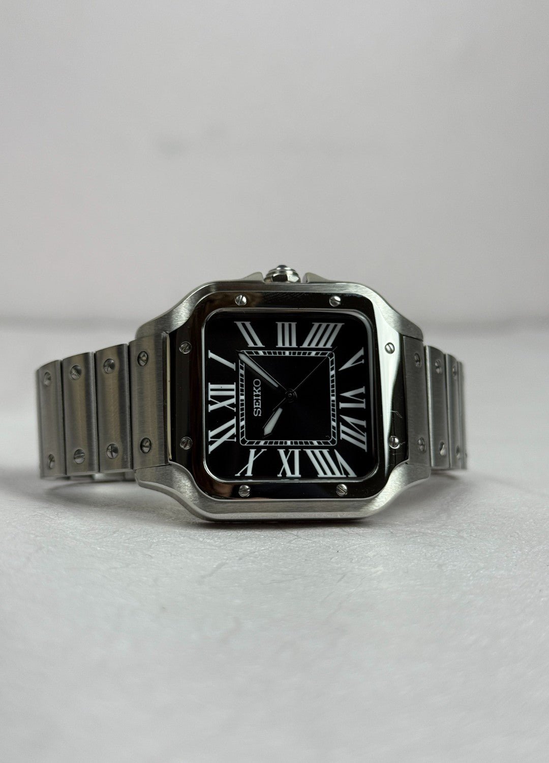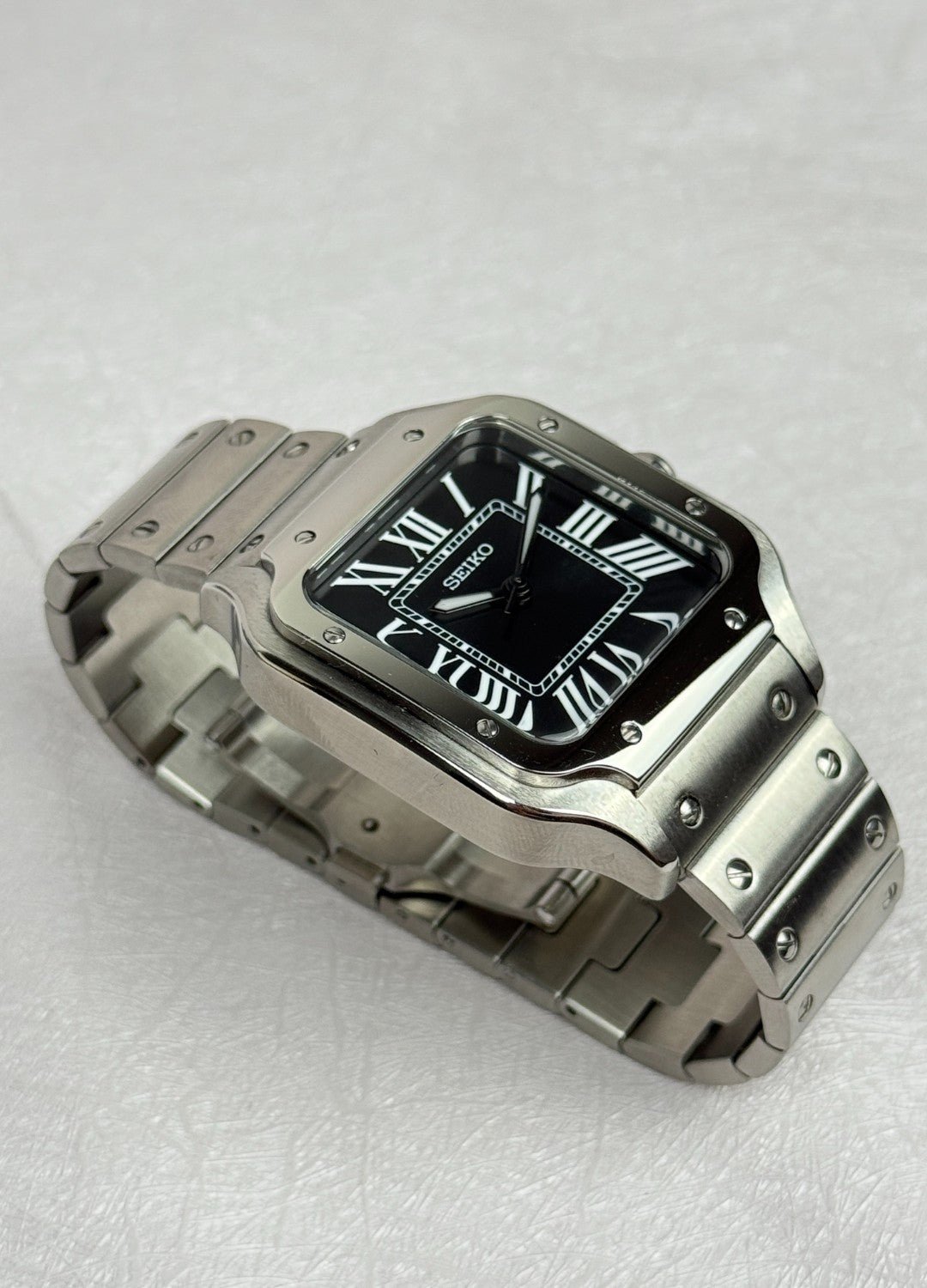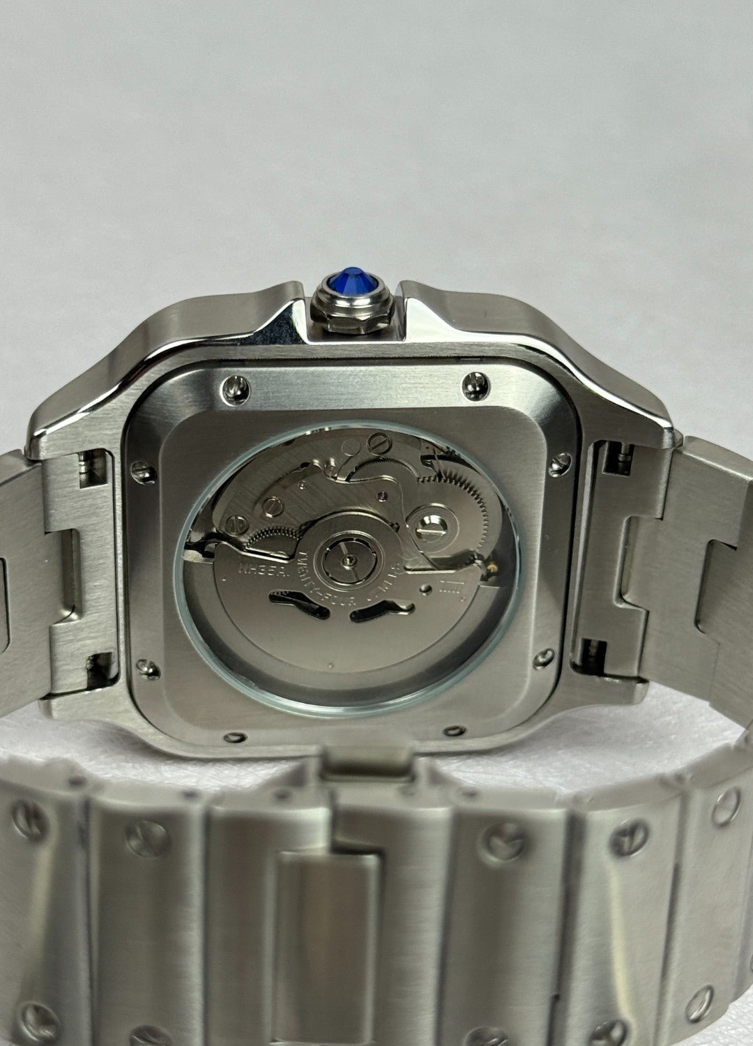 This model features a clean dial without a date window. The layout is symmetrical. the case is brushed stainless steel. and the bracelet follows the same finishing. A simple. well-balanced daily automatic watch.