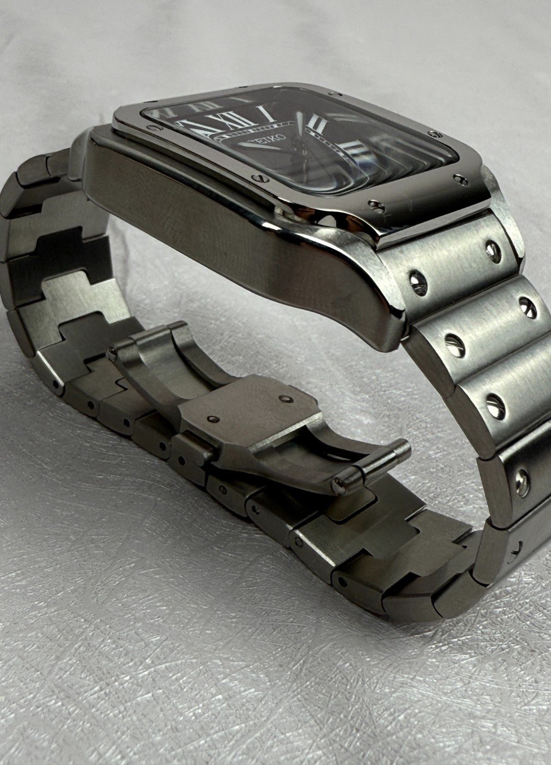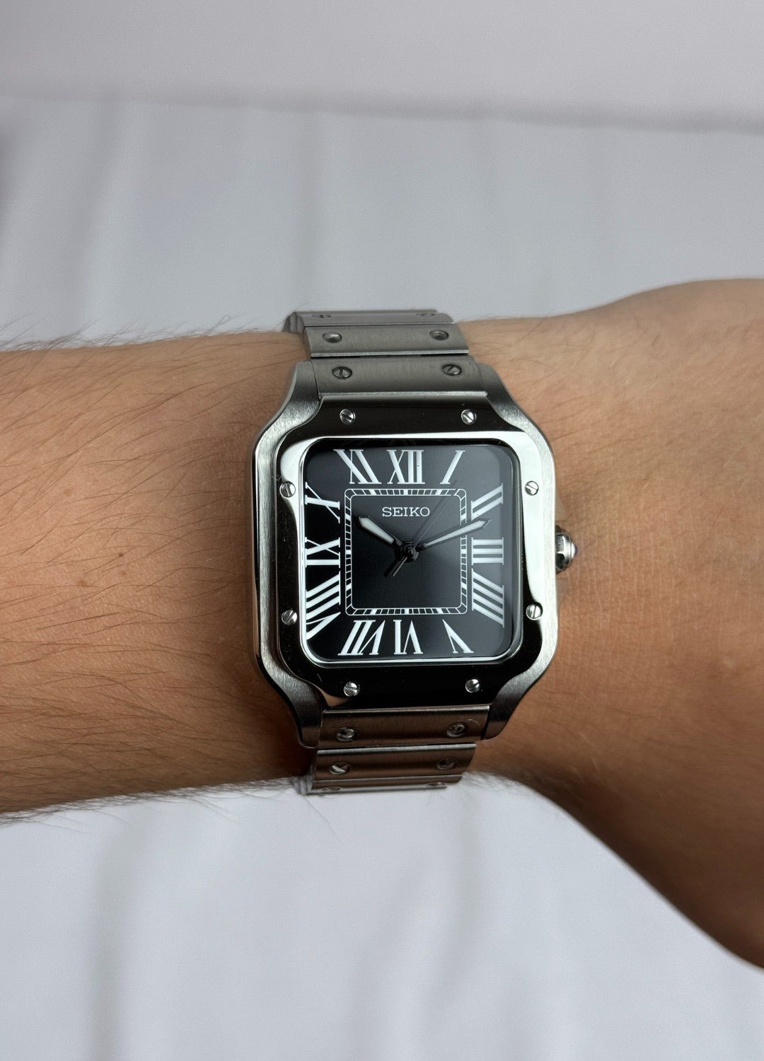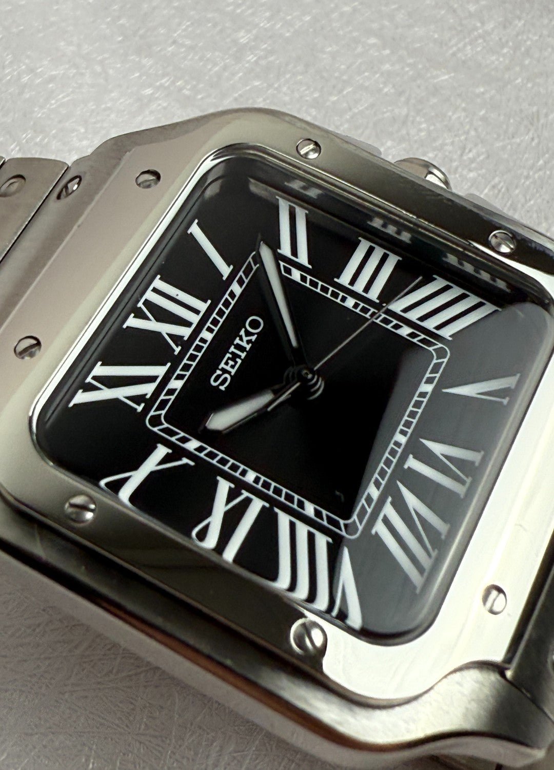 This model features a clean dial without a date window. The layout is symmetrical. the case is brushed stainless steel. and the bracelet follows the same finishing. A simple. well-balanced daily automatic watch.